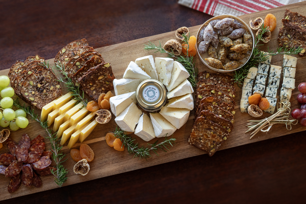 Comes with dry fruits, nuts and grapes, baguettes and/or fruit & nuts crackers, as well as a perfectly paired authentic French chutney.